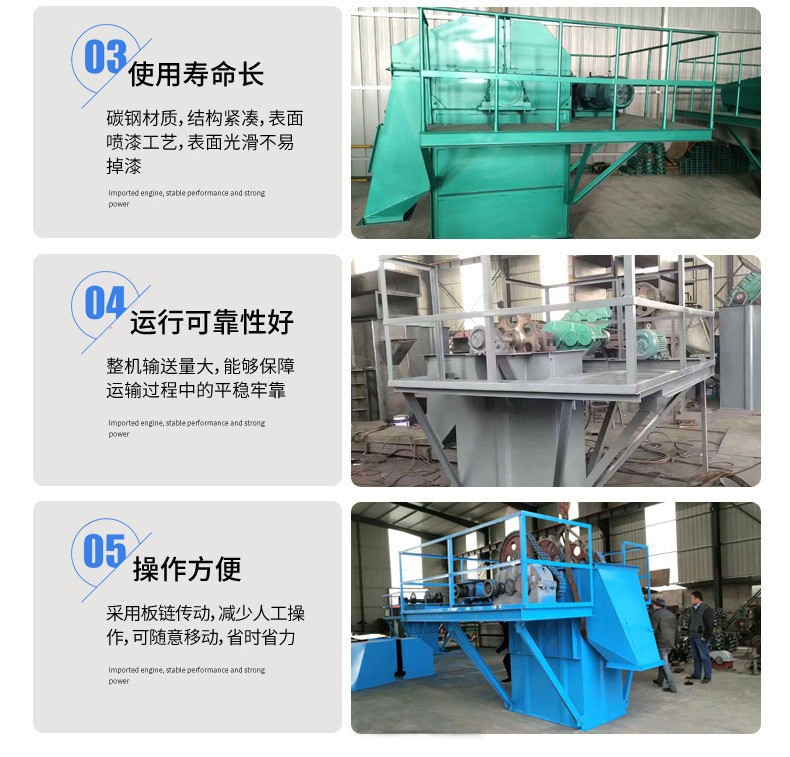 NE50扳鏈式斗式提升機,壓裂砂,云母礦等物料通過振動給料機勻速給料到斗式提升機中,由料斗攜帶物料運行輸送提升。