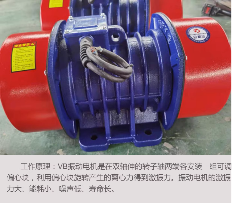 VB系列振動電機是在雙軸伸的轉(zhuǎn)子軸兩端各安裝一組可調(diào)偏心塊,利用偏心塊旋轉(zhuǎn)產(chǎn)生的離心力得到激振力。振動電機的激振力大、能耗小、噪聲低、壽命長。它使用于料倉、料斗、溜槽的倉壁振動,還是自同步直線振動篩、振動給料機、振動輸送機等各種振動機械的激振源,是冶金、礦山、煤炭、建材、化工等部門的理想設(shè)備,有廣泛的應(yīng)用范圍安裝和使用,本系列振動電機為三相380V 50HZ異步電動機,封閉自冷式、臥式安裝。