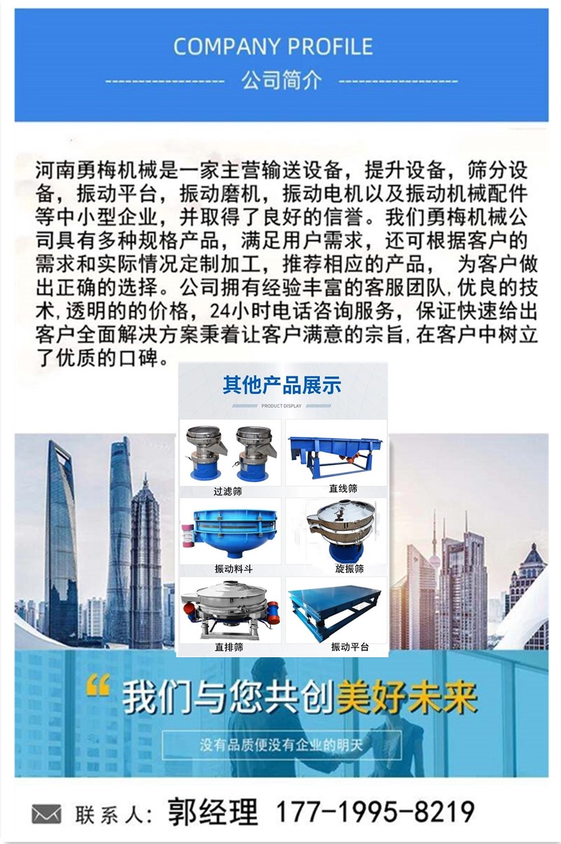 • 主營產品:k型給煤機、斗式提升機、星型卸料器、振動磨機、振動平臺、振動料斗、振動篩、旋振篩、滾筒篩、直線振動篩、礦用振動篩、FU輸送機、螺旋輸送機、振動電機的廠家,產品廣泛銷售至化工、食品、鑄造、鋼廠、水泥、冶金、建材鐵