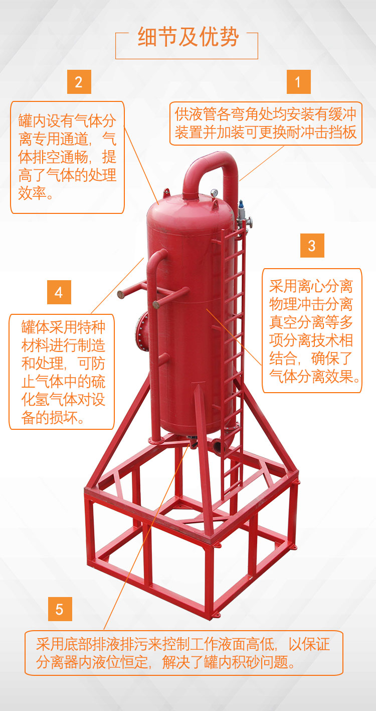 罐內(nèi)設(shè)有氣體分離專用通道,氣體排空通暢,提高了氣體的處理效率
