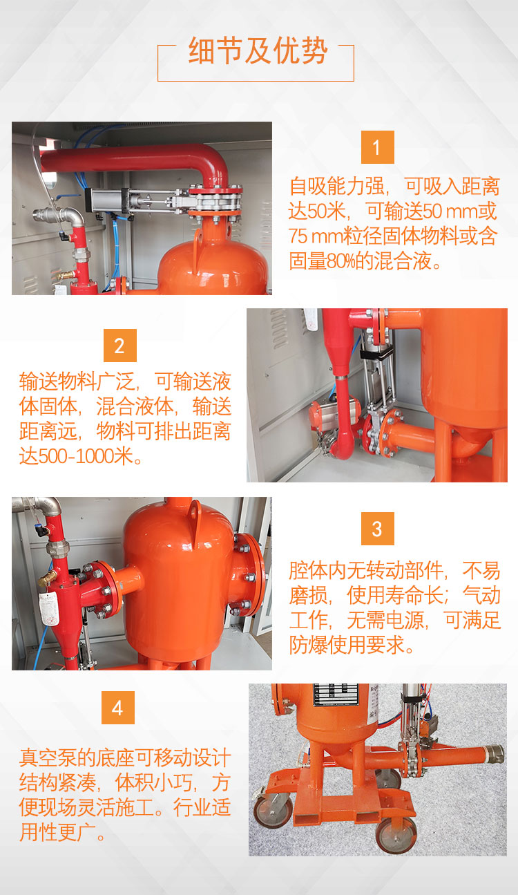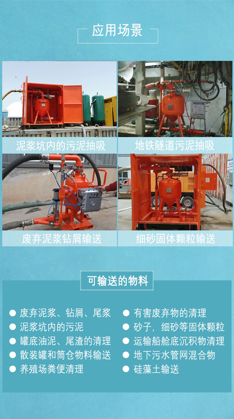 輸送物料廣泛,可輸送液體固體,混合液體,輸送距離遠(yuǎn),物料可排出距離達(dá)500米。