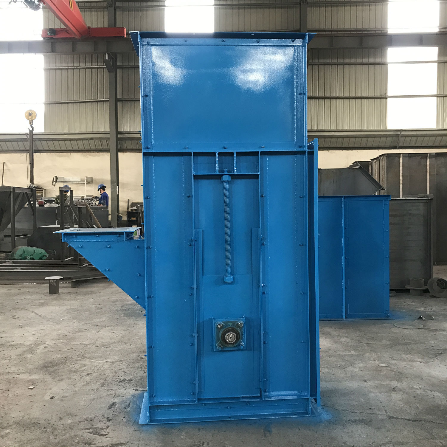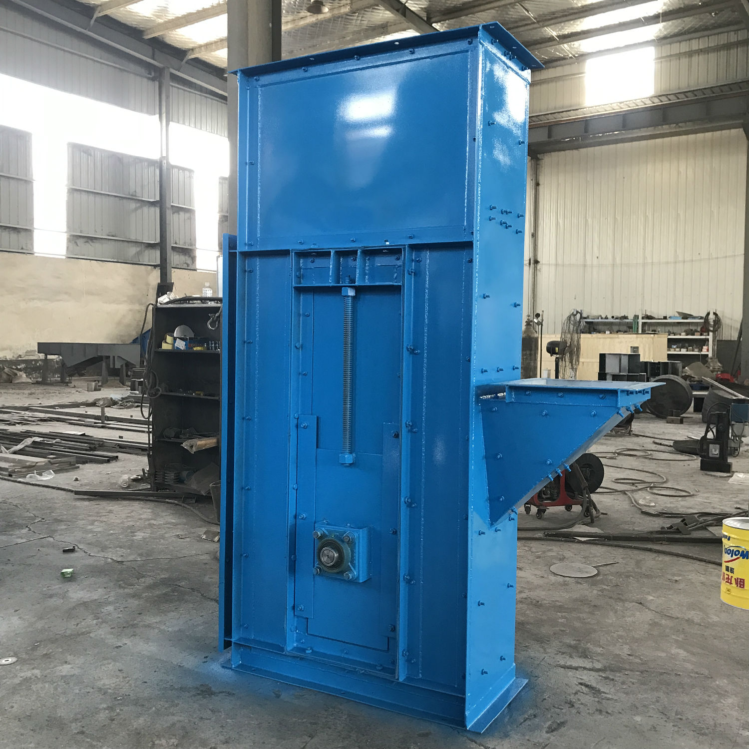 水泥廠的水泥經(jīng)過加工成粉料后,為了方便存儲,都會用料罐,這個罐子大小不一樣,但是上料設(shè)備都是使用的斗式提升機,因為他可以進行節(jié)省空間的,垂直將地上的散料就那么輕松的給通過料斗輸送到***的料倉入料口。