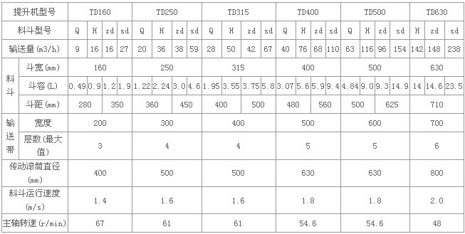 TD斗式提升機主要技術(shù)參數(shù):