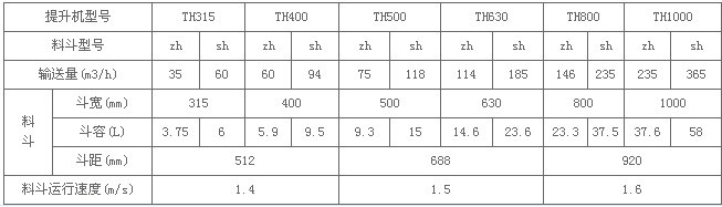 TH斗式提升機主要技術(shù)參數(shù):