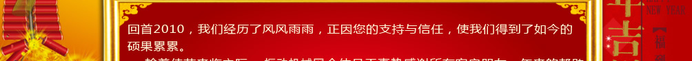 值此2010年新春即將來臨之際,請(qǐng)?jiān)试S我代表新鄉(xiāng)市中鑫機(jī)械設(shè)備有限公司并以我個(gè)人的名義,向所有關(guān)心、支持新鄉(xiāng)市中鑫機(jī)械設(shè)備有限公司的各位領(lǐng)導(dǎo)、各界朋友致以衷心的感謝;向全體員工及家屬致以誠(chéng)摯的問候和衷心的祝福。...