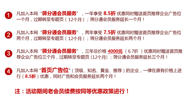 無論您是首次成交客戶,還是已經(jīng)合作的老客戶;無論您是訂購會員服務(wù),還是進行廣告推廣,都能享受超值優(yōu)惠,老客戶訂購振動機械網(wǎng)服務(wù),優(yōu)惠更多,驚喜更多! 活動截止時間2011年8月1日,機會不多,預(yù)訂從速,詳細促銷內(nèi)容請見如下介紹: | |